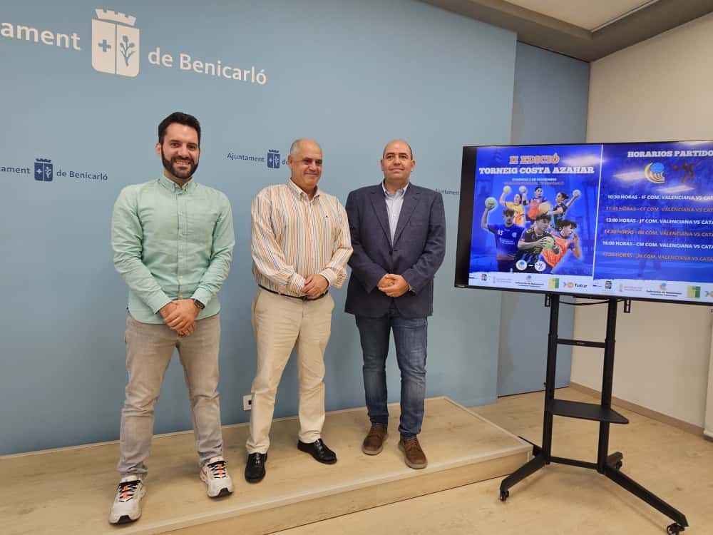 Benicarló acogerá la segunda edición del Torneo Costa Azahar el próximo 2 de noviembre Ayer se presentó oficialmente la segunda edición del Torneo Costa Azahar, un evento deportivo que reunirá a las selecciones autonómicas de la Comunitat Valenciana y Cataluña en una jornada de balonmano de alto nivel que se celebrará el próximo 2 de noviembre en el Pabellón