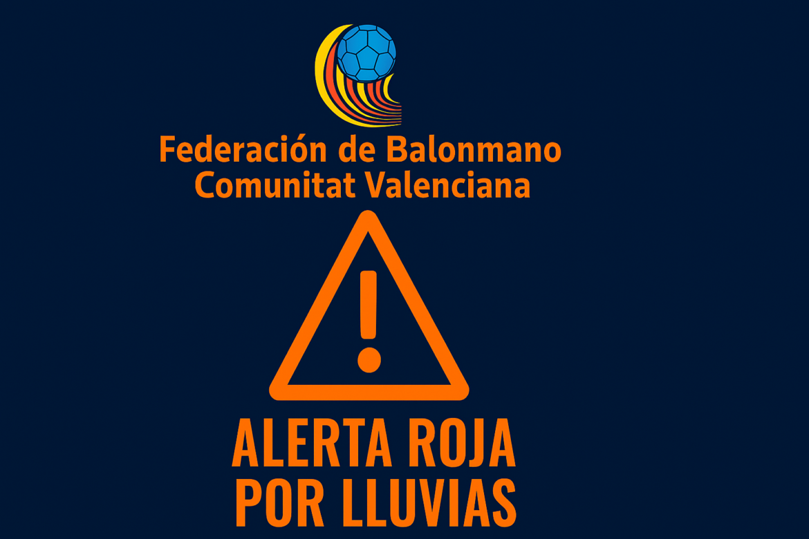 Ante la activación de la alerta roja por lluvias torrenciales decretada por la Agencia Estatal de Meteorología (AEMET) y el Centro de Coordinación de Emergencias de la Generalitat Valenciana, la Federación de Balonmano de la Comunitat Valenciana informa de las siguientes medidas extraordinarias para garantizar la seguridad de clubes, deportistas, técnicos, árbitros, personal federativo y