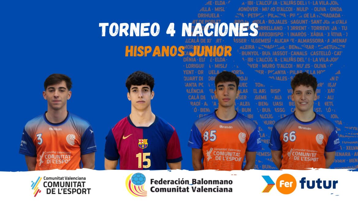 4 jugadores de la Comunitat Valenciana jugarán con los Hispanos Junior el Torneo 4 Naciones Los Hispanos Junior disputarán del 8 al 10 de enero el Torneo Internacional 4 Naciones en Francia, en la Salle du Haras de Angers.  El seleccionador, Nacho Moyano, ha ofrecido una lista de 17 jugadores dentro de la cual destacan