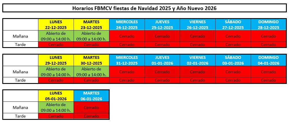 Martes, 23 de diciembre • Delegaciones de Alicante y Valencia: Abierto de 09:00 a 14:00 h